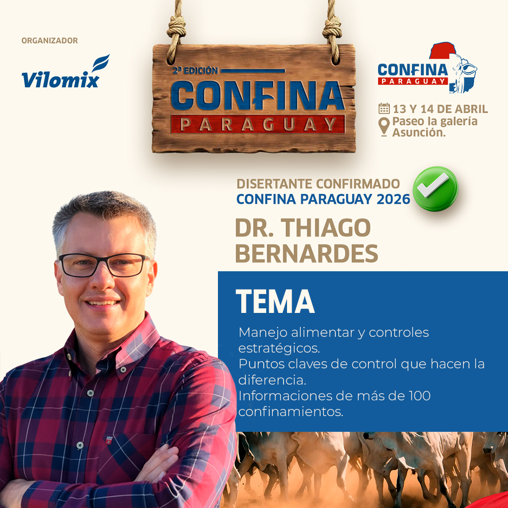 Participá del principal encuentro técnico y estratégico del confinamiento bovino en Paraguay. Dos jornadas de conocimiento aplicado, innovación, networking y visión de negocio para productores, técnicos y empresas del sector ganadero.